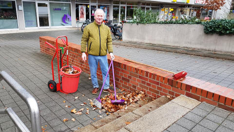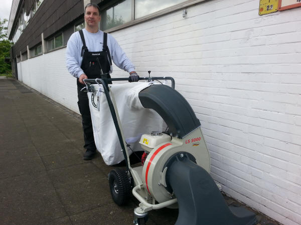 5/2015 Der neue Hausmeister Herr Mensing ist da und der neue Laubsauger auch.