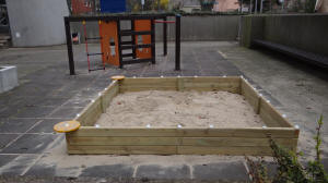 Vor der Apotheke Die Wendeltreppe ist wieder sicher und neu saniert, der Sandkasten ist neu und hat neuen Sand bekommen