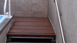 4/2014 Im Schwimmbad es sind 3 große Schalldämpfer eingebaut und die eingebauten Teile sind von Herrn Kist gestrichen worden. Wir haben durch den Einbau eine deutliche Verringerung der Geräusche der benötigten Lüfter. Die Ebene am Tauchbecken ist mit Edelholz belegt und ein Handlauf wurde auch angebracht. Die Anzeige ( Temperatur + Luftfeuchtigkeit ) ist erneuert.